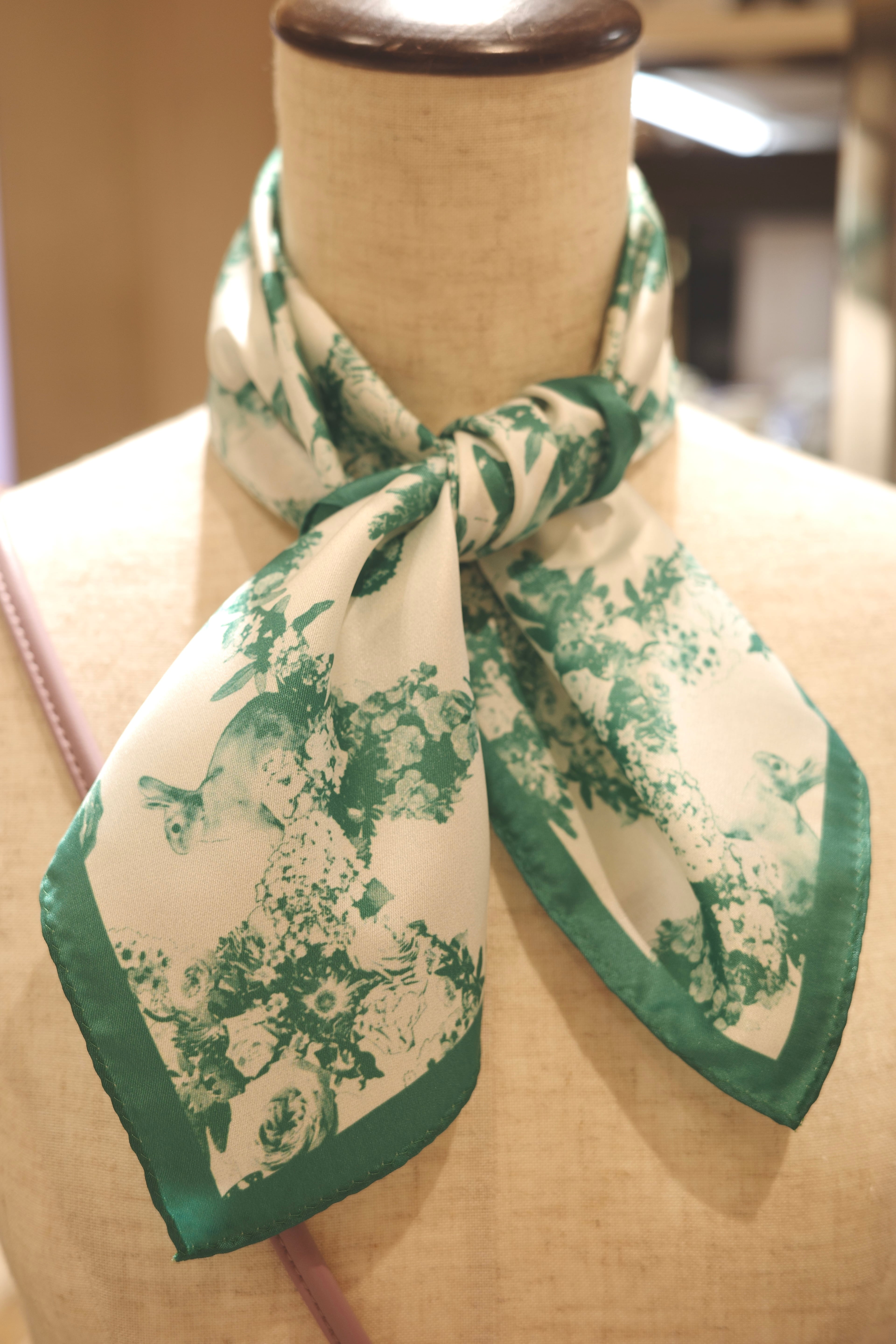 こだわりと想いの詰まったスカーフは、スカーフメーカーさんの印刷技術と縫製も素晴らしく、仕上げの裾まつりも美しく仕立てられています。